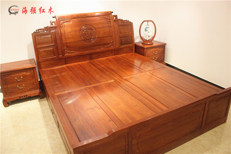 名稱:海強1號大床件數(shù):三件套 大床+床頭柜*2材質:花梨木家具尺寸:200*180*40*120cm床頭柜:55*42*55cm整套紅木大床實拍圖片:包括大床+兩個床頭柜。床尾大板的細節(jié),好家具,看細節(jié)。床身的側邊:床上兩邊都各有抽屜,是可以打開放衣物的喲,非常實用!床頭柜床頭靠板。非常漂亮的新中式設計風格。床面板