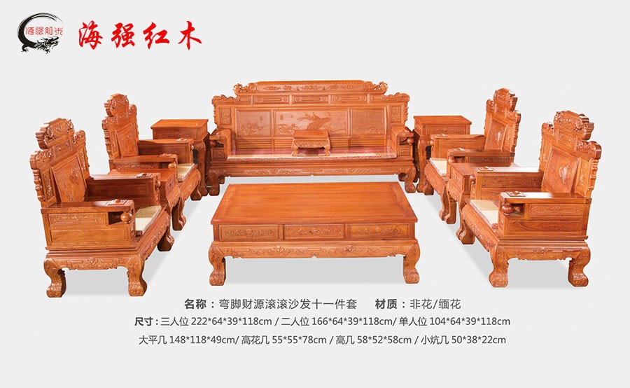名稱:財源滾滾沙發(fā)十一件套材質(zhì):非洲花梨木/緬甸花梨木親愛的客戶,歡迎光臨我們的官網(wǎng),此款沙發(fā)限時特價詳情咨詢海強紅木-倪蘭香 電話/微信:137-7792-2843